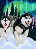 Картина по номерам «Лайки на фоне северного сияния» 20x30 см