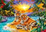 Алмазная вышивка «Семья тигров в райском уголке» 40x50 см